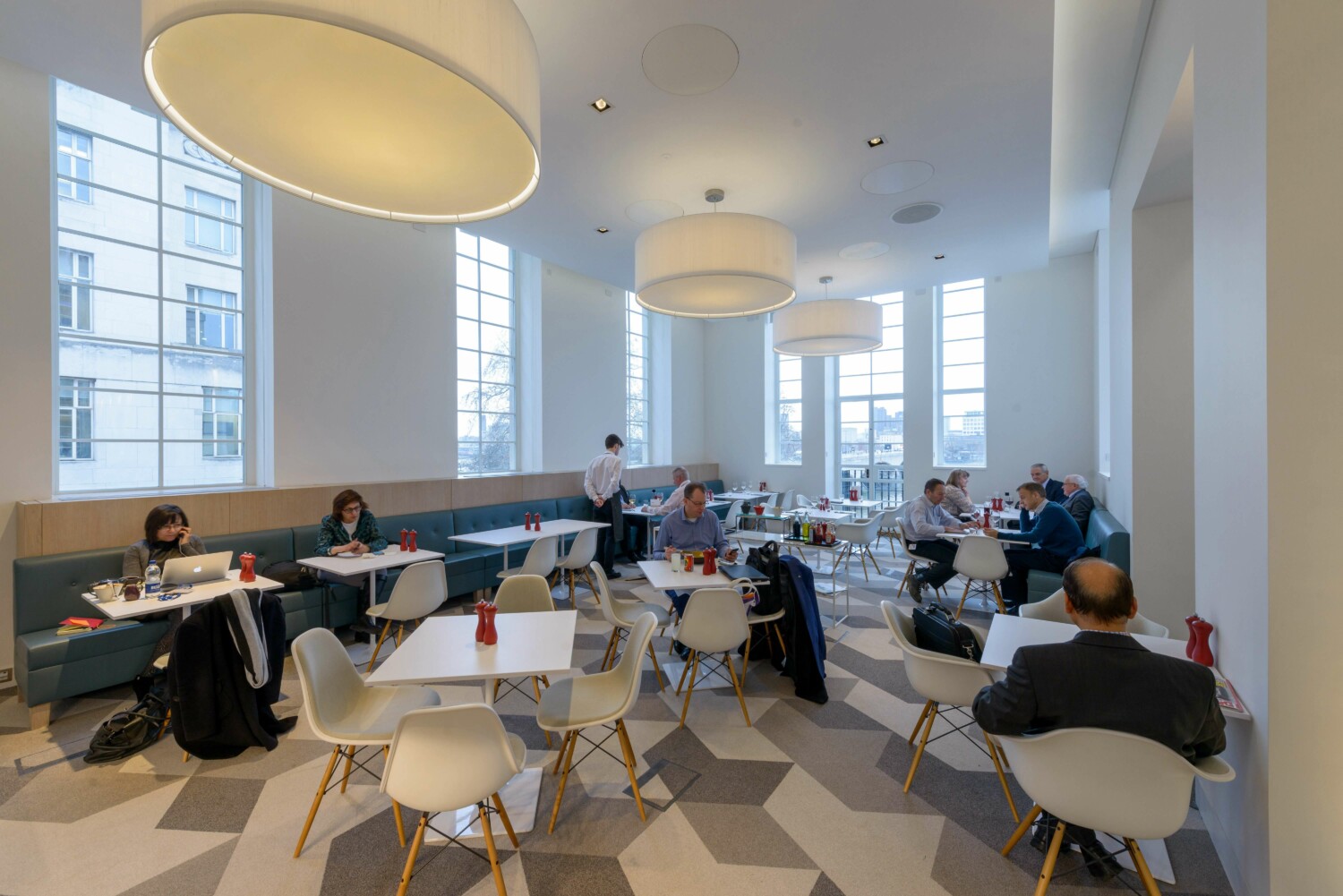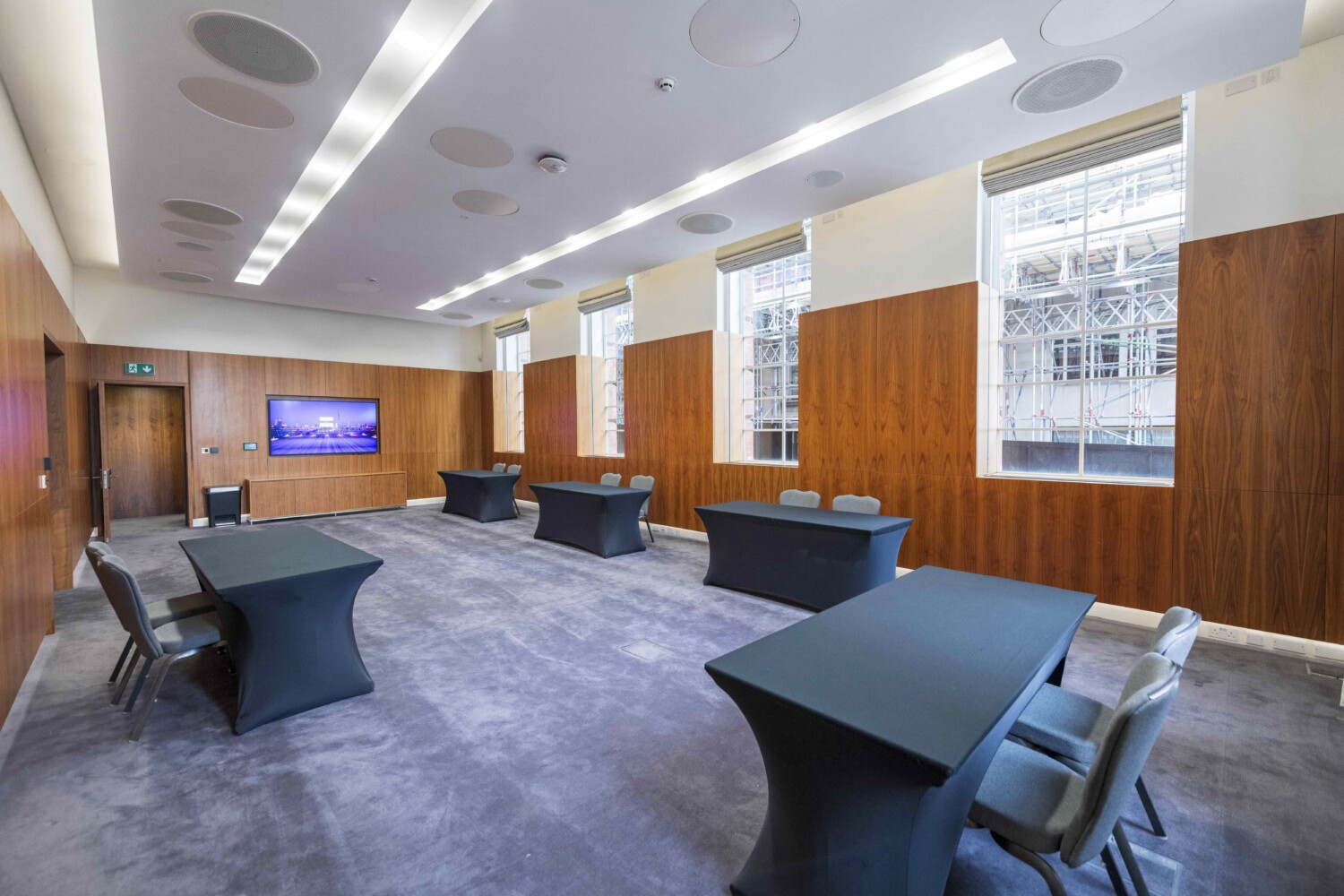 The venue features two state-of-the-art lecture theatres with a combined capacity of up to 626 delegates, including the flagship spaces that can accommodate 175-451 guests individually. The crown jewel is the dedicated rooftop terrace offering exclusive outdoor event space with panoramic London views, perfect for corporate receptions and networking events.